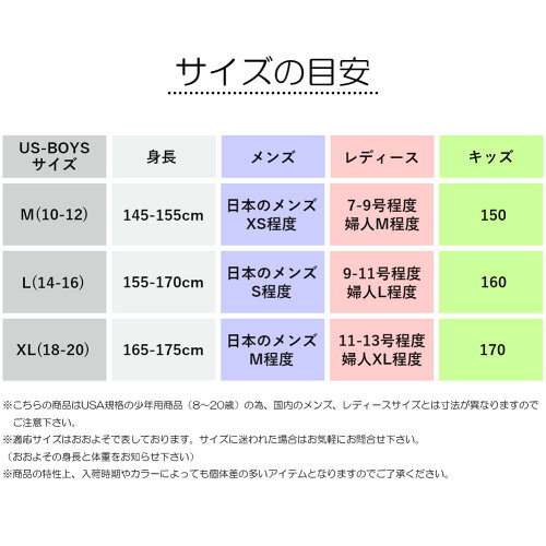 ※USA規格のBoysサイズの為、日本向けサイズ表記とは異なります。