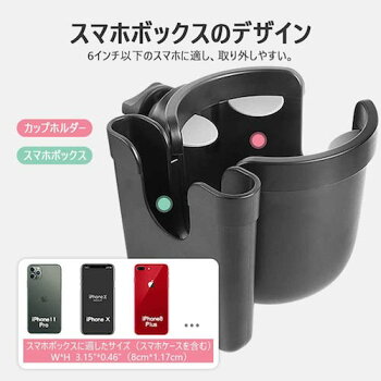 ベビーカー ボトルホルダー 哺乳瓶 ホルダー 紙コップ 飲み物 カップホルダー 360度回転 角度調整可能 取付簡単 収納便利 携帯電話収納 ベビーカーフック2個付き