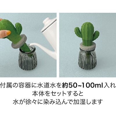 AG-28085-86「潤いマスコット サボテン ガラスBR・ガラスGY」URUOU SERIESミニ 簡易 エコ 加湿器 卓上 オフィス 可愛い インテリア 気化式 飾り 装飾 陶器 DECOLE