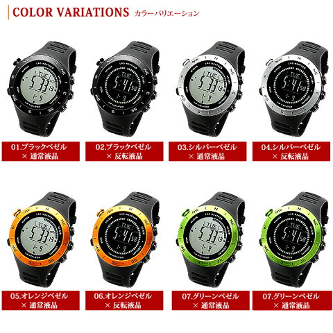カラー01.ブラックベゼル×通常液晶02.ブラックベゼル×反転液晶03.シルバーベゼル×通常液晶04.シルバーベゼル×反転液晶05.オレンジベゼル×通常液晶06.オレンジベゼル×反転液晶07.グリーンベゼル×通常液晶08.グリーンベゼル×反転液晶仕様駆動方式充電池式連続使用時間・心拍測定を常に使用する場合:約19時間(0.8日)・時計のみ使用する場合:約2623時間(109.3日)・下記使用の場合:約382時間(15.9日)心拍測定:1時間 アラーム:30秒 バックライト:30秒 気圧計:35分 コンパス:5分・充電時間:約3〜4時間※連続使用時間や充電時間は、お使いの環境や状況によります。