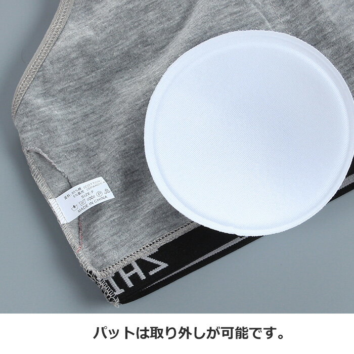 商品詳細 ・生地の伸縮性:あり・洗濯方法:ネットに入れて通常洗濯 商品説明 小学生高学年〜中学生向けパッド付きスポーツブラです。