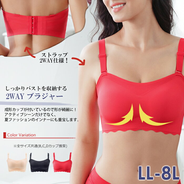 大きいサイズ レディース ブラジャー 下着 ストラップ取り外し可能 2way チューブトップブラ ノンワイヤー ナイトブラ インナー LL 3L 4L 5L 6L 7L 8L ゆったりサイズ ぽっちゃり女子 プラスサイズ