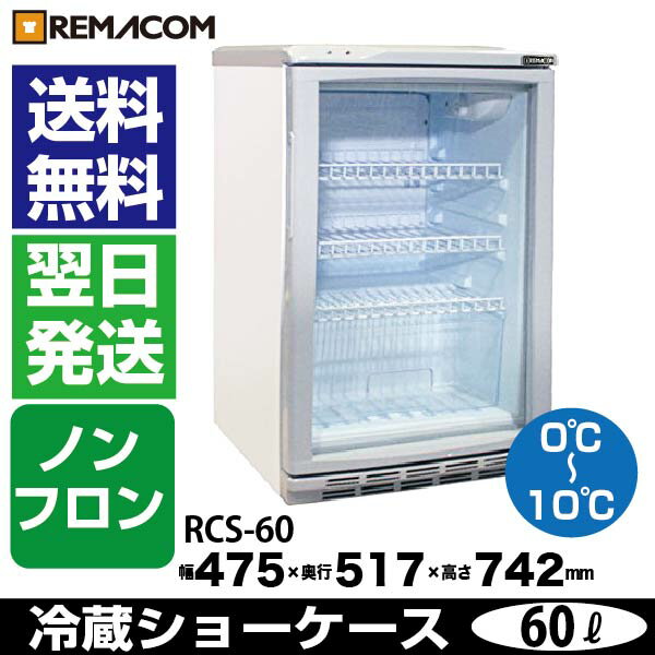 冷蔵ショーケース RCS-60 製品詳細 型 番 RCS-60 JANコード 4571439620177 電 源 単相100V (50/60Hz) 消費電力量 0.85/0.88kWh/24h 消費電力 105/117W 外形寸法 幅×奥行×高さ(mm) 475×517×742 有効内径寸法 幅×奥行×高さ(mm) 390×370×552 ※コンプレッサー部分を含む。