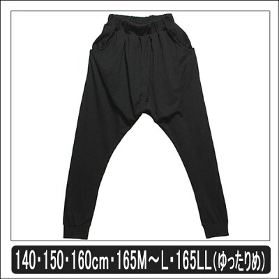 女の子 サルエルパンツ J0808 P0521 黒無地 サルエルパンツ 140cm 150cm 160cm 165M〜L 165LL 裾リブA 裾リブB メール便は送料無料♪