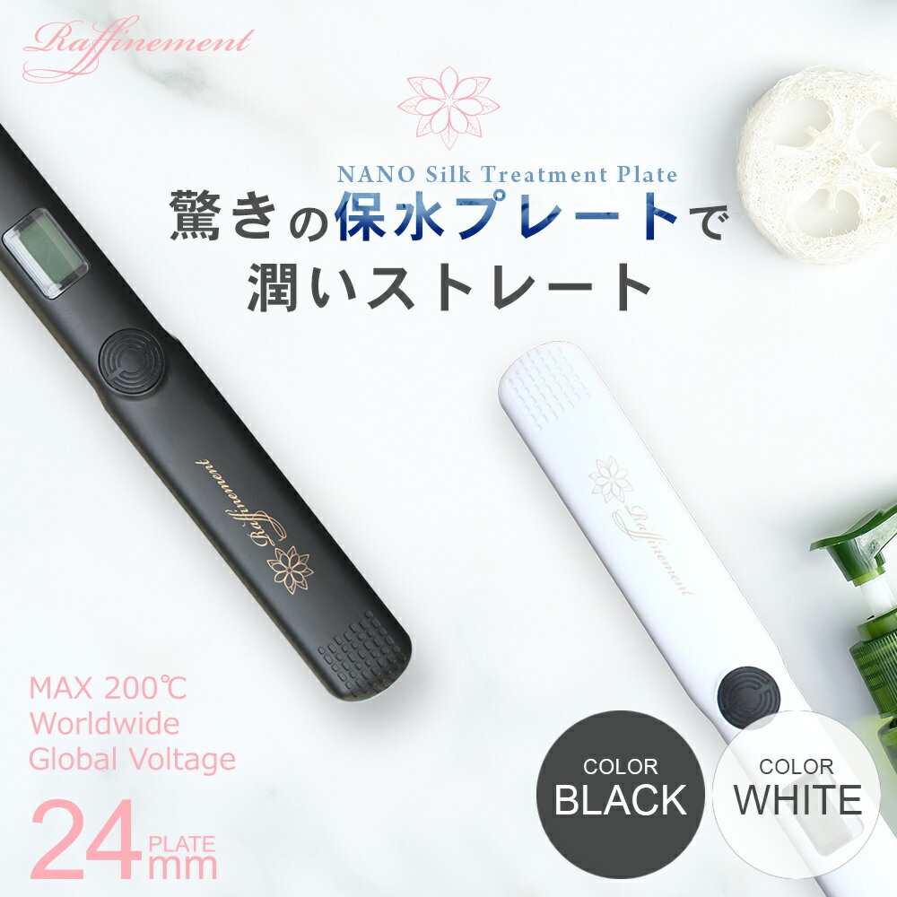 【髪の水分蒸発しない!】ストレートヘアアイロン 24mm 傷まない うるおい ヘアアイロン MAX200℃ 海外対応 急速加熱 コテ LED液晶 開閉ロック 耐熱性カバー ブラック ホワイト Raffinement FFF-RFI24MB-BK FFF-RFI24MW-WH2