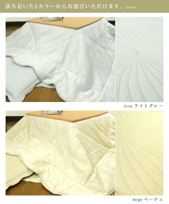 細かい模様のキルティングと贅沢な刺繍を施した贅沢な洗えるこたつ布団です。