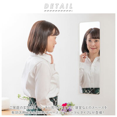 サッと拭けて、気になるお手入れもラクラク簡単◎素材PETフイルムミラーPS樹脂アクリル系吸着シート生産国日本サイズ[縦]約60cm/[横]約18cm※サイズは当店計測の実寸サイズです。